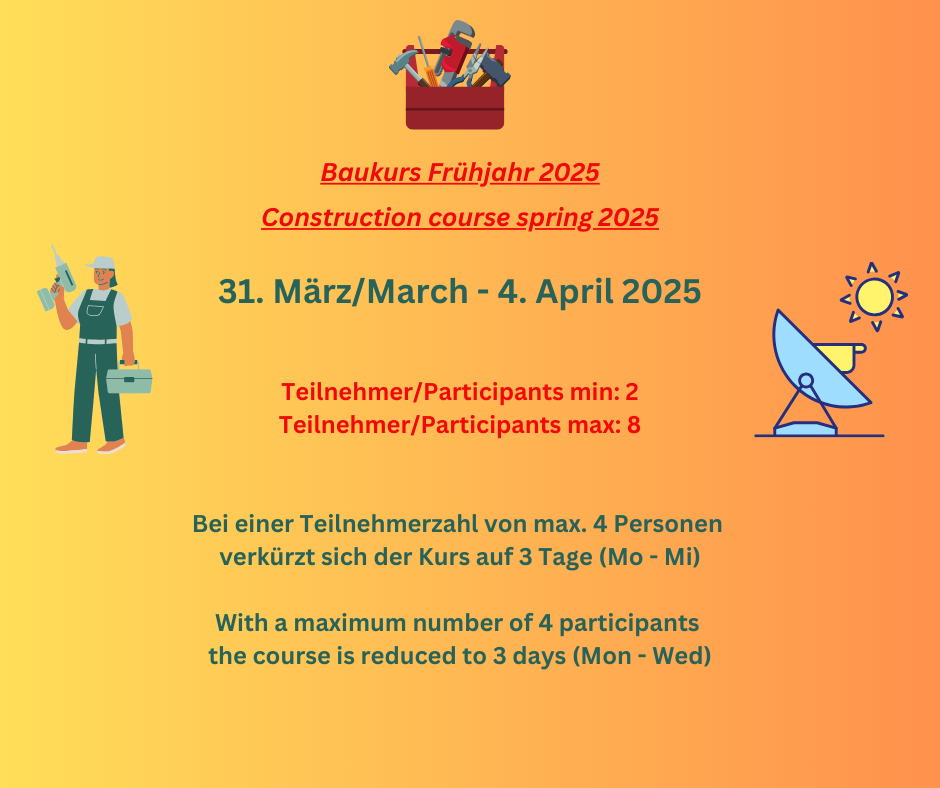 Vom 31.03. – 02.04.2025 fand wieder ein Baukurs statt.